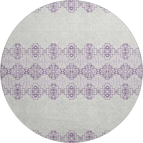 Mayfield Premium Machine Washable Abstract AMF970 Purple 8 ft. x 8 ft. Round Rug