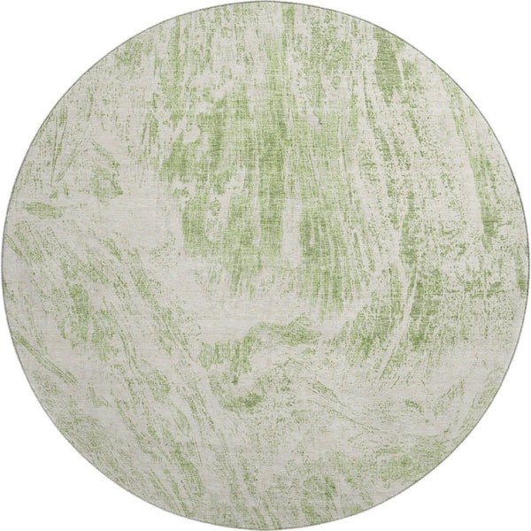 Mayfield Premium Machine Washable Abstract AMF971 Aloe 8 ft. x 8 ft. Round Rug
