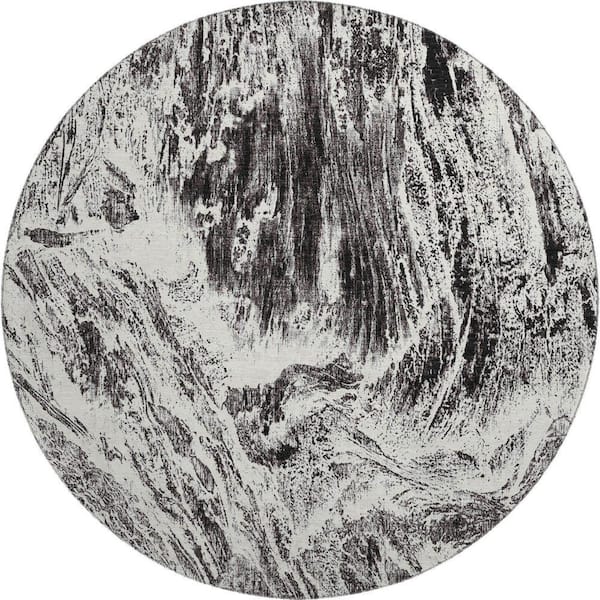 Mayfield Premium Machine Washable Abstract AMF971 Black 8 ft. x 8 ft. Round Rug
