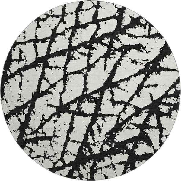 Mayfield Premium Machine Washable Abstract AMF972 Black 8 ft. x 8 ft. Round Rug