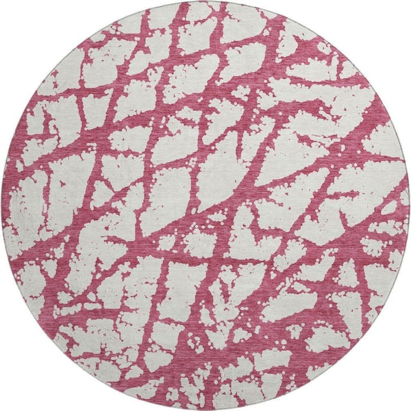 Mayfield Premium Machine Washable Abstract AMF972 Blush 8 ft. x 8 ft. Round Rug