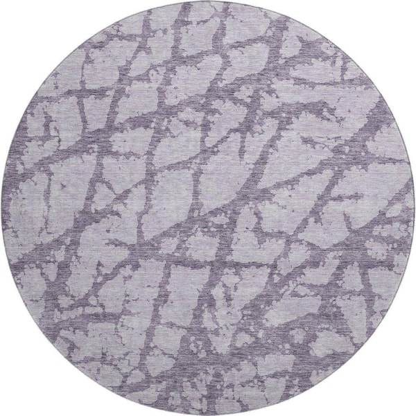 Mayfield Premium Machine Washable Abstract AMF972 Lavender 8 ft. x 8 ft. Round Rug