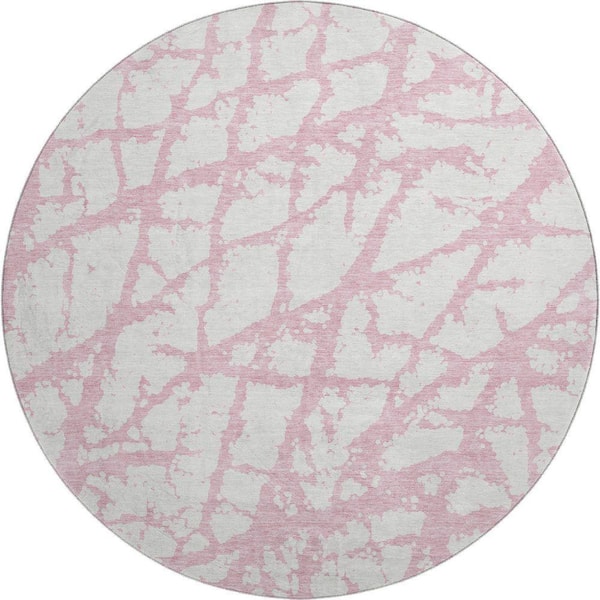 Mayfield Premium Machine Washable Abstract AMF972 Pink 8 ft. x 8 ft. Round Rug