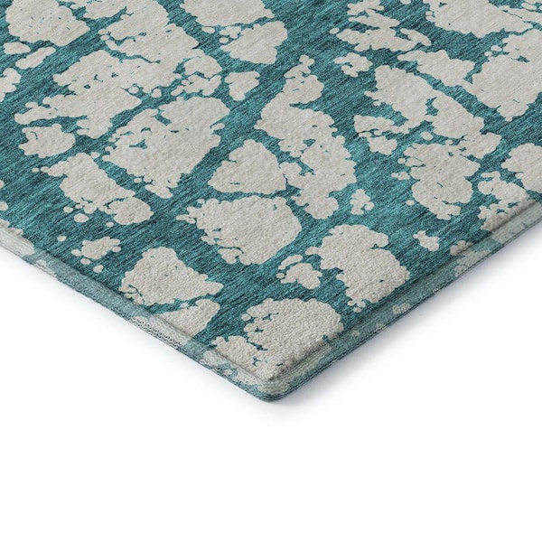 Mayfield Premium Machine Washable Abstract AMF972 Teal 10 ft. x 14 ft. Area Rug