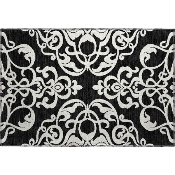Mayfield Premium Machine Washable Abstract AMF973 Black 1 ft. 8 in. x 2 ft. 6 in. Area Rug