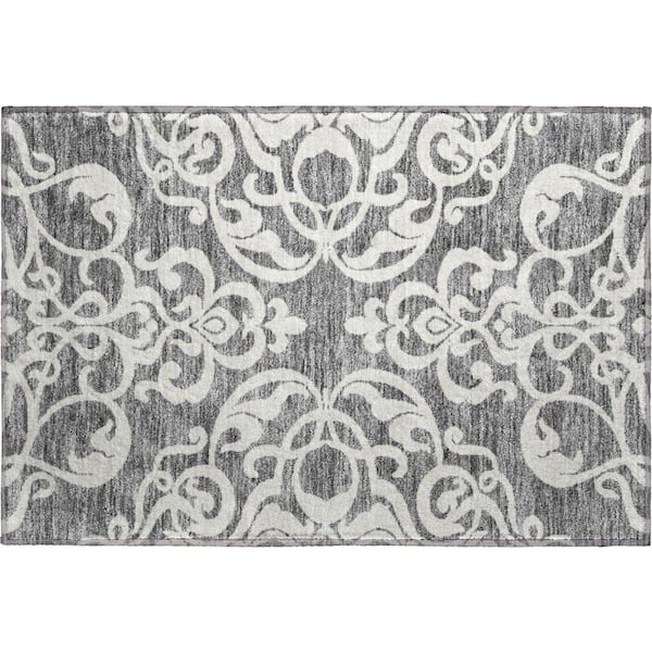 Mayfield Premium Machine Washable Abstract AMF973 Gray 1 ft. 8 in. x 2 ft. 6 in. Area Rug