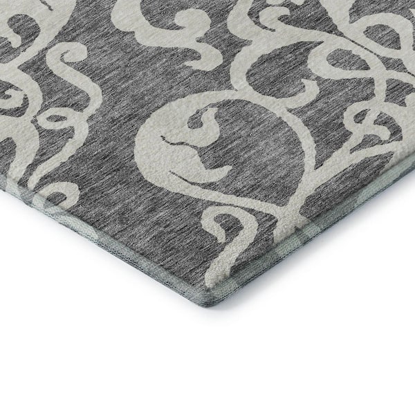 Mayfield Premium Machine Washable Abstract AMF973 Gray 3 ft. x 5 ft. Area Rug
