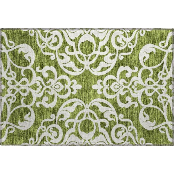 Mayfield Premium Machine Washable Abstract AMF973 Green 1 ft. 8 in. x 2 ft. 6 in. Area Rug