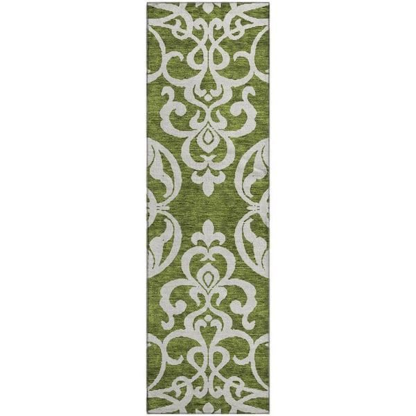 Mayfield Premium Machine Washable Abstract AMF973 Green 2 ft. 3 in. x 7 ft. 6 in. Runner Rug