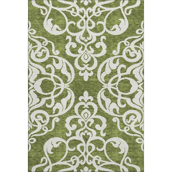 Mayfield Premium Machine Washable Abstract AMF973 Green 9 ft. x 12 ft. Area Rug