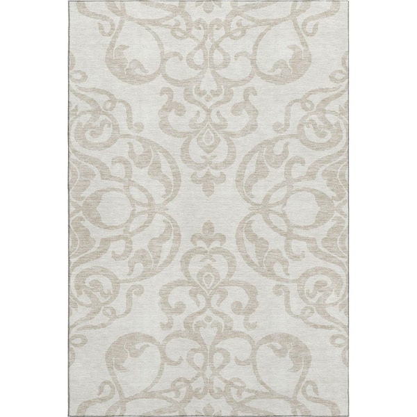 Mayfield Premium Machine Washable Abstract AMF973 Ivory 3 ft. x 5 ft. Area Rug