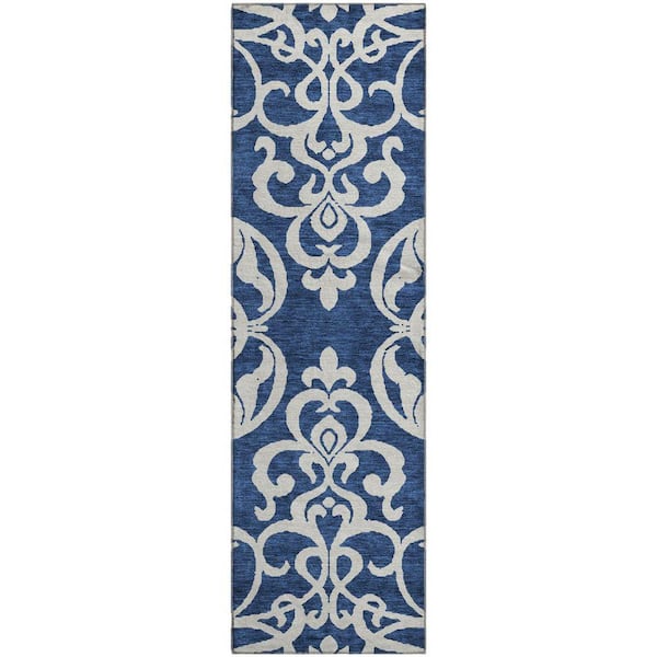 Mayfield Premium Machine Washable Abstract AMF973 Navy 2 ft. 3 in. x 7 ft. 6 in. Runner Rug