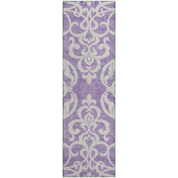 Mayfield Premium Machine Washable Abstract AMF973 Purple 2 ft. 3 in. x 7 ft. 6 in. Runner Rug