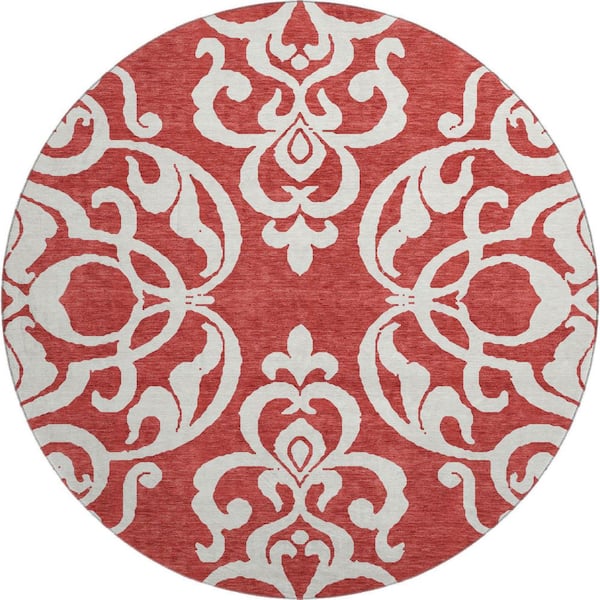 Mayfield Premium Machine Washable Abstract AMF973 Red 8 ft. x 8 ft. Round Rug