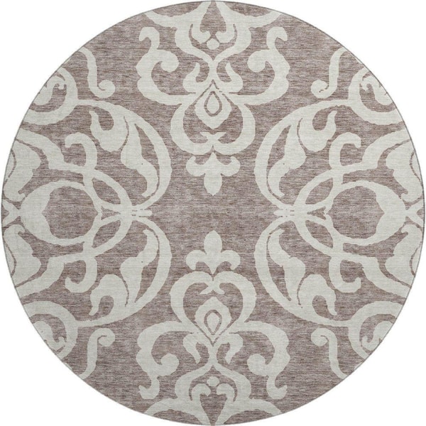 Mayfield Premium Machine Washable Abstract AMF973 Taupe 8 ft. x 8 ft. Round Rug
