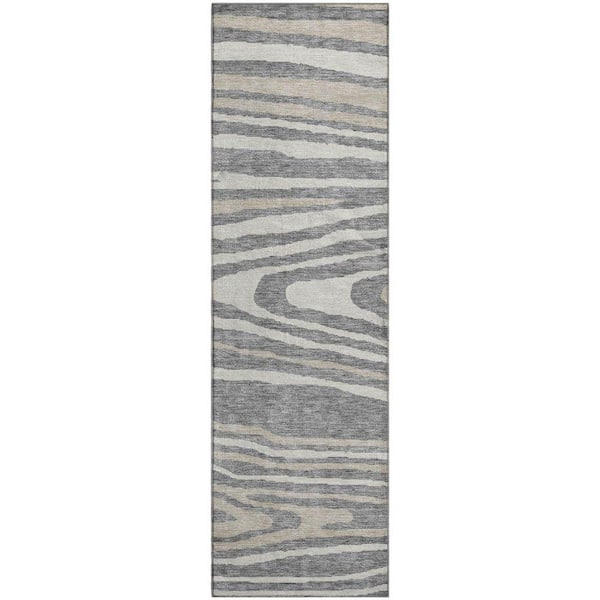 Mayfield Premium Machine Washable Abstract AMF974 Gray 2 ft. 3 in. x 7 ft. 6 in. Runner Rug