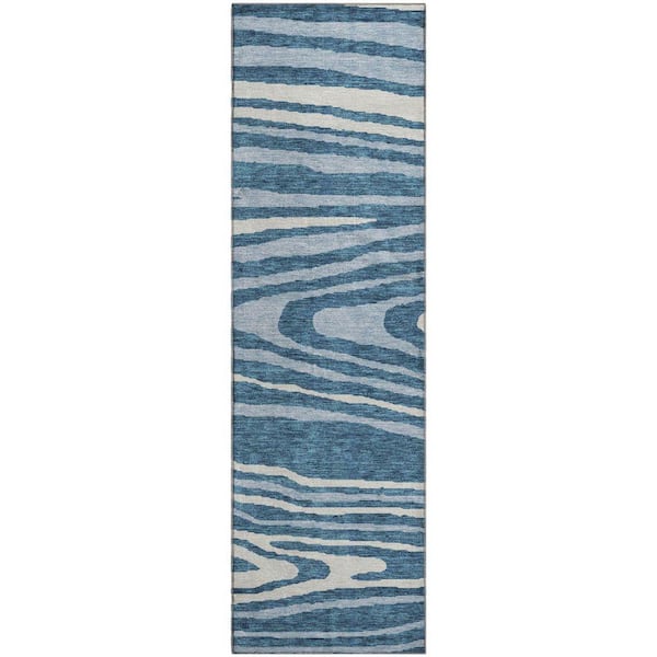 Mayfield Premium Machine Washable Abstract AMF974 Navy 2 ft. 3 in. x 7 ft. 6 in. Runner Rug