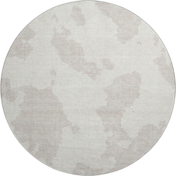 Mayfield Premium Machine Washable Abstract AMF975 Ivory 8 ft. x 8 ft. Round Rug