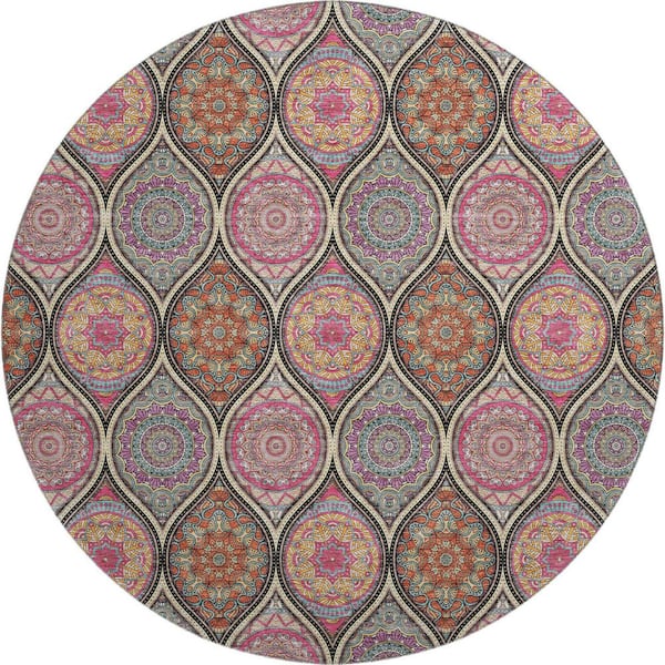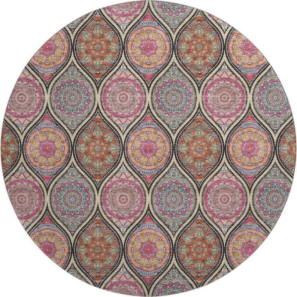 Mayfield Premium Machine Washable Abstract AMF976 Black 8 ft. x 8 ft. Round Rug