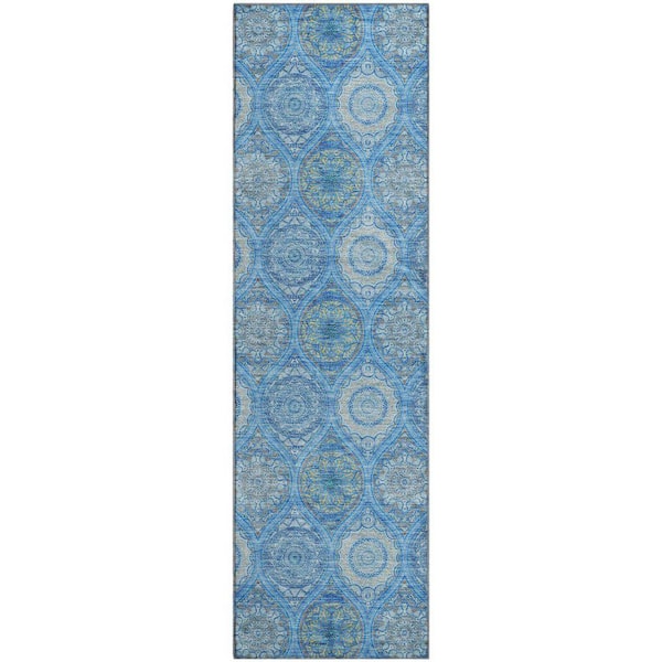 Mayfield Premium Machine Washable Abstract AMF976 Denim 2 ft. 3 in. x 7 ft. 6 in. Runner Rug