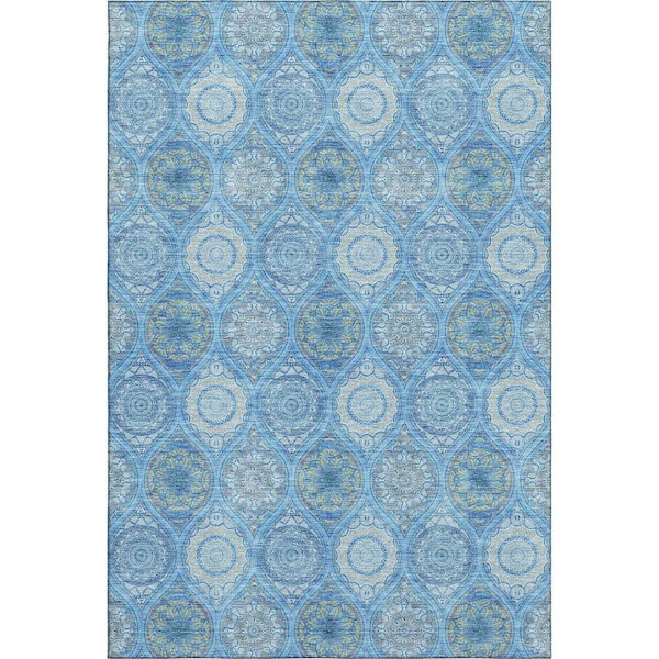 Mayfield Premium Machine Washable Abstract AMF976 Denim 2 ft. 6 in. x 3 ft. 10 in. Area Rug