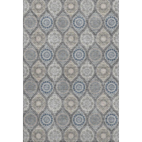 Mayfield Premium Machine Washable Abstract AMF976 Gray 3 ft. x 5 ft. Area Rug