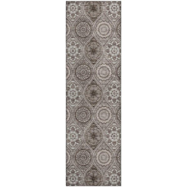 Mayfield Premium Machine Washable Abstract AMF976 Khaki 2 ft. 3 in. x 7 ft. 6 in. Runner Rug