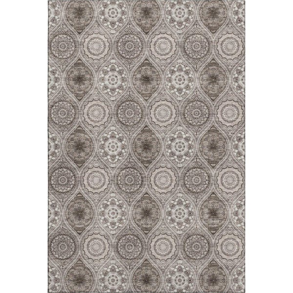 Mayfield Premium Machine Washable Abstract AMF976 Khaki 3 ft. x 5 ft. Area Rug