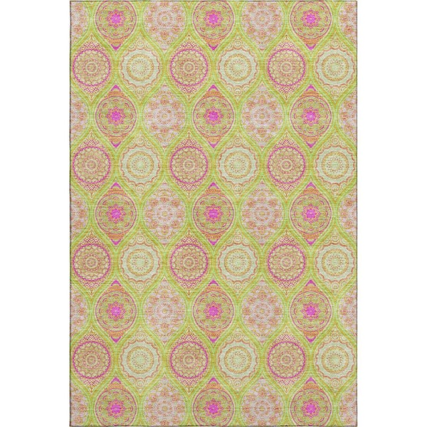 Mayfield Premium Machine Washable Abstract AMF976 Lime 3 ft. x 5 ft. Area Rug