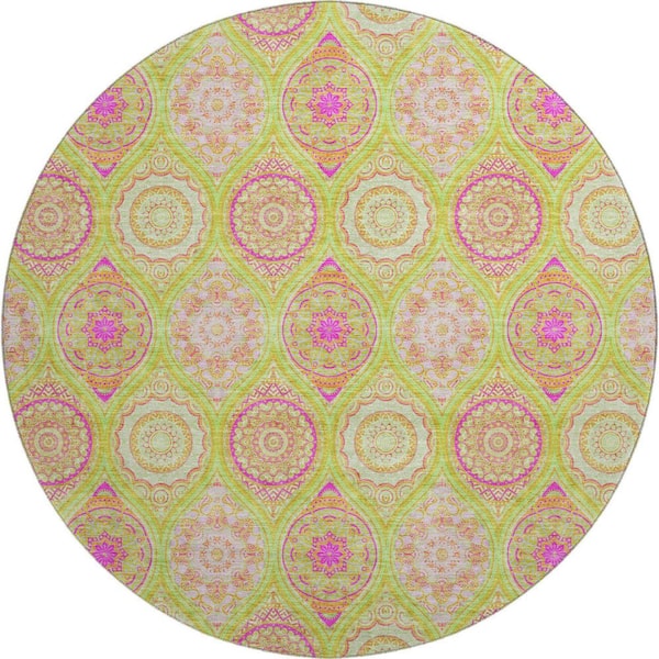 Mayfield Premium Machine Washable Abstract AMF976 Lime 8 ft. x 8 ft. Round Rug