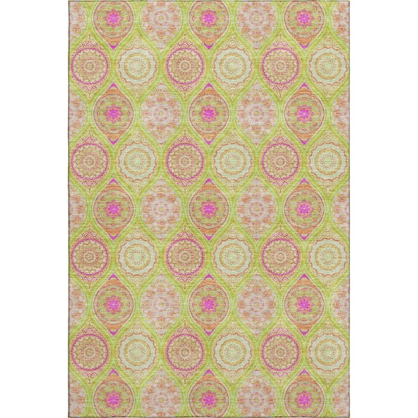 Mayfield Premium Machine Washable Abstract AMF976 Lime 9 ft. x 12 ft. Area Rug