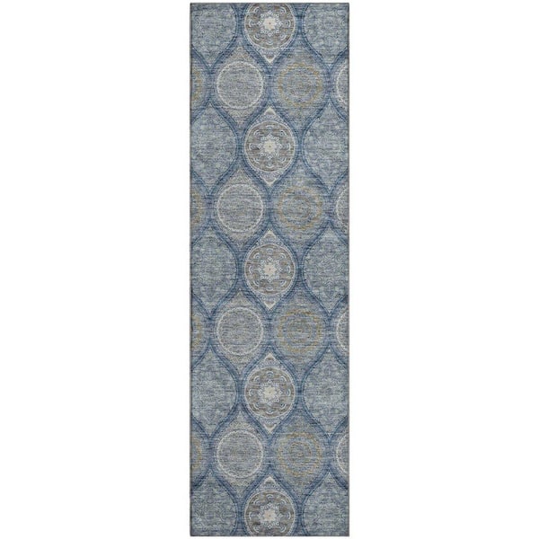 Mayfield Premium Machine Washable Abstract AMF976 Navy 2 ft. 3 in. x 7 ft. 6 in. Runner Rug