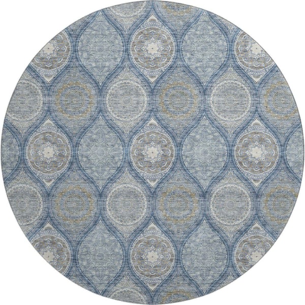 Mayfield Premium Machine Washable Abstract AMF976 Navy 8 ft. x 8 ft. Round Rug