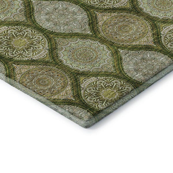 Mayfield Premium Machine Washable Abstract AMF976 Olive 10 ft. x 14 ft. Area Rug