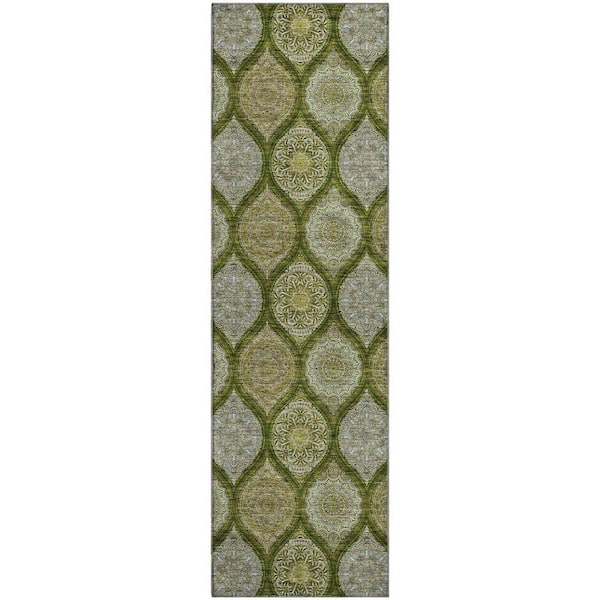 Mayfield Premium Machine Washable Abstract AMF976 Olive 2 ft. 3 in. x 7 ft. 6 in. Runner Rug