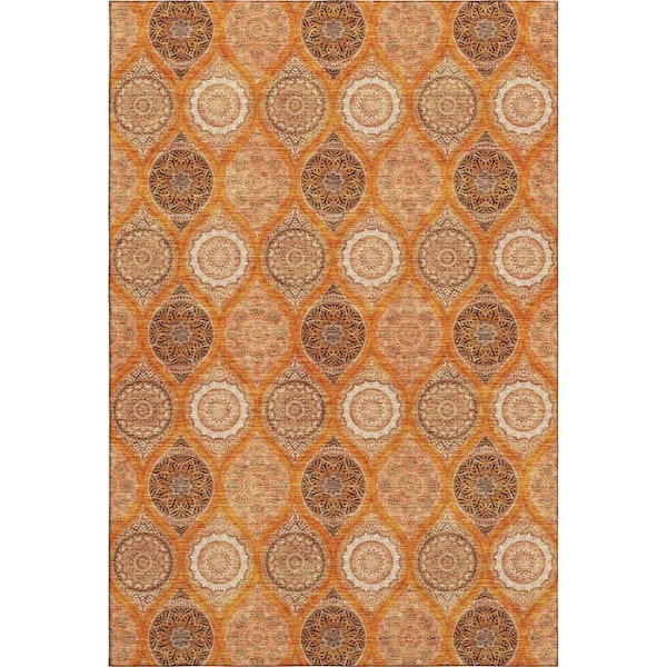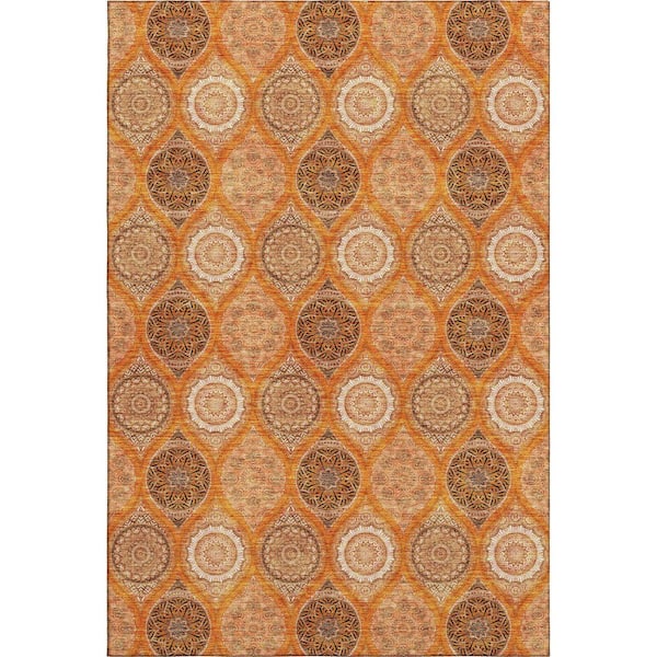 Mayfield Premium Machine Washable Abstract AMF976 Orange 8 ft. x 10 ft. Area Rug