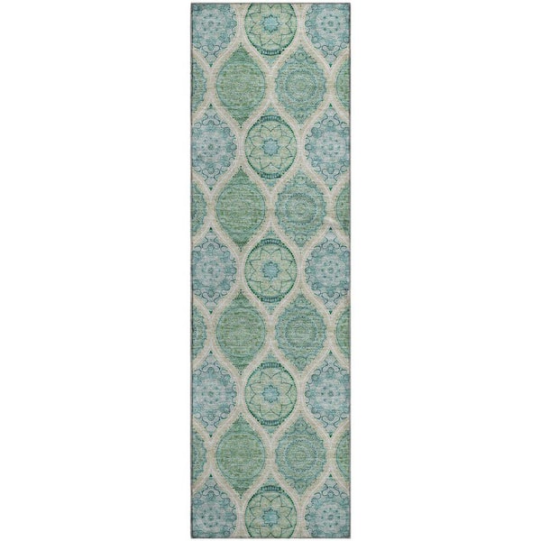 Mayfield Premium Machine Washable Abstract AMF976 Sage 2 ft. 3 in. x 7 ft. 6 in. Runner Rug