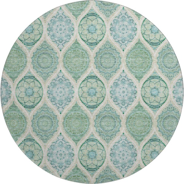 Mayfield Premium Machine Washable Abstract AMF976 Sage 8 ft. x 8 ft. Round Rug
