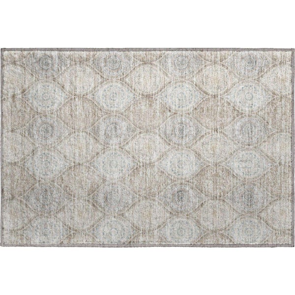Mayfield Premium Machine Washable Abstract AMF976 Taupe 1 ft. 8 in. x 2 ft. 6 in. Area Rug