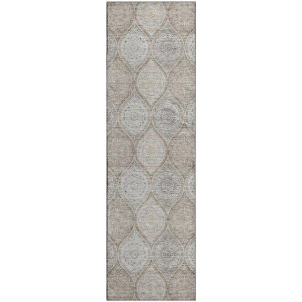 Mayfield Premium Machine Washable Abstract AMF976 Taupe 2 ft. 3 in. x 7 ft. 6 in. Runner Rug