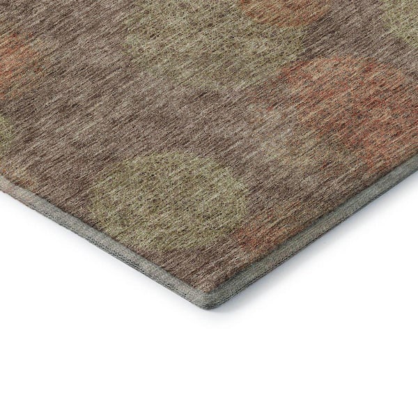 Mayfield Premium Machine Washable Abstract AMF977 Brown 8 ft. x 8 ft. Round Rug
