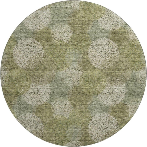 Mayfield Premium Machine Washable Abstract AMF977 Green 8 ft. x 8 ft. Round Rug