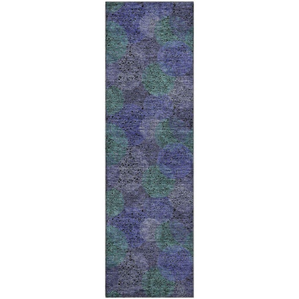 Mayfield Premium Machine Washable Abstract AMF977 Purple 2 ft. 3 in. x 7 ft. 6 in. Runner Rug