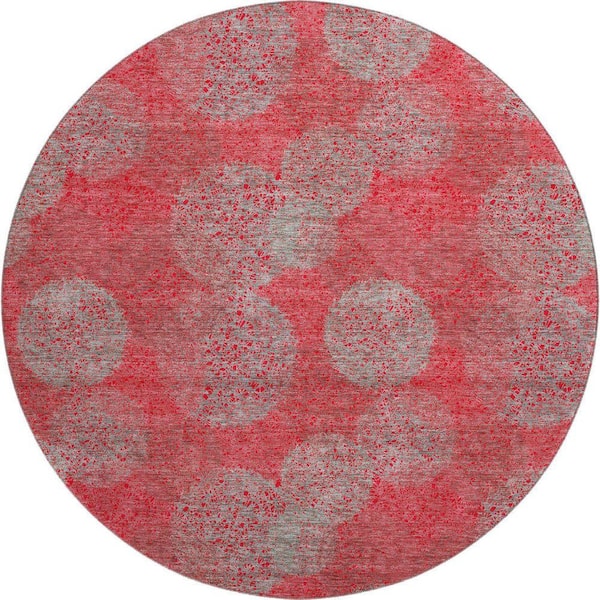 Mayfield Premium Machine Washable Abstract AMF977 Red 8 ft. x 8 ft. Round Rug