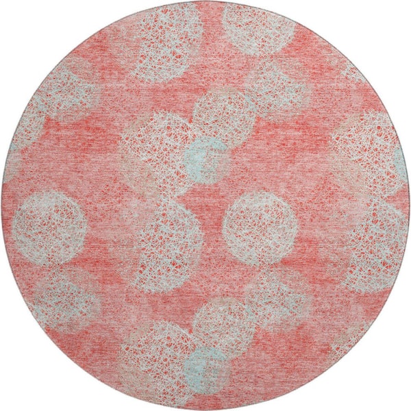 Mayfield Premium Machine Washable Abstract AMF977 Salmon 8 ft. x 8 ft. Round Rug