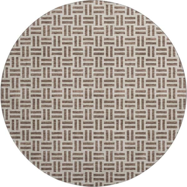 Mayfield Premium Machine Washable Abstract AMF978 Chocolate 8 ft. x 8 ft. Round Rug