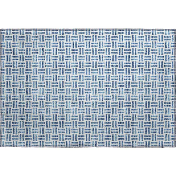 Mayfield Premium Machine Washable Abstract AMF978 Denim 1 ft. 8 in. x 2 ft. 6 in. Area Rug