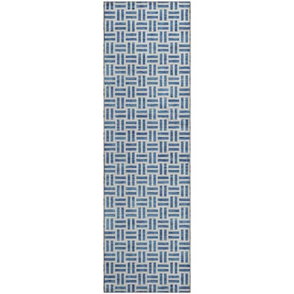 Mayfield Premium Machine Washable Abstract AMF978 Denim 2 ft. 3 in. x 7 ft. 6 in. Runner Rug