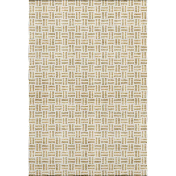 Mayfield Premium Machine Washable Abstract AMF978 Gold 3 ft. x 5 ft. Area Rug