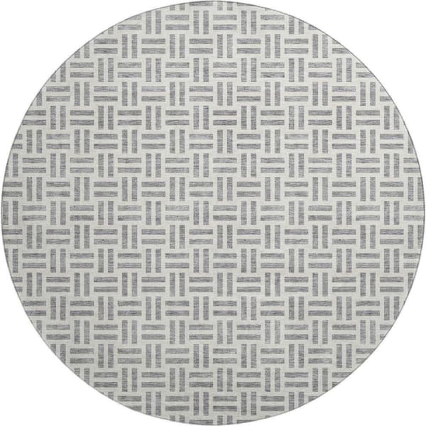 Mayfield Premium Machine Washable Abstract AMF978 Gray 8 ft. x 8 ft. Round Rug